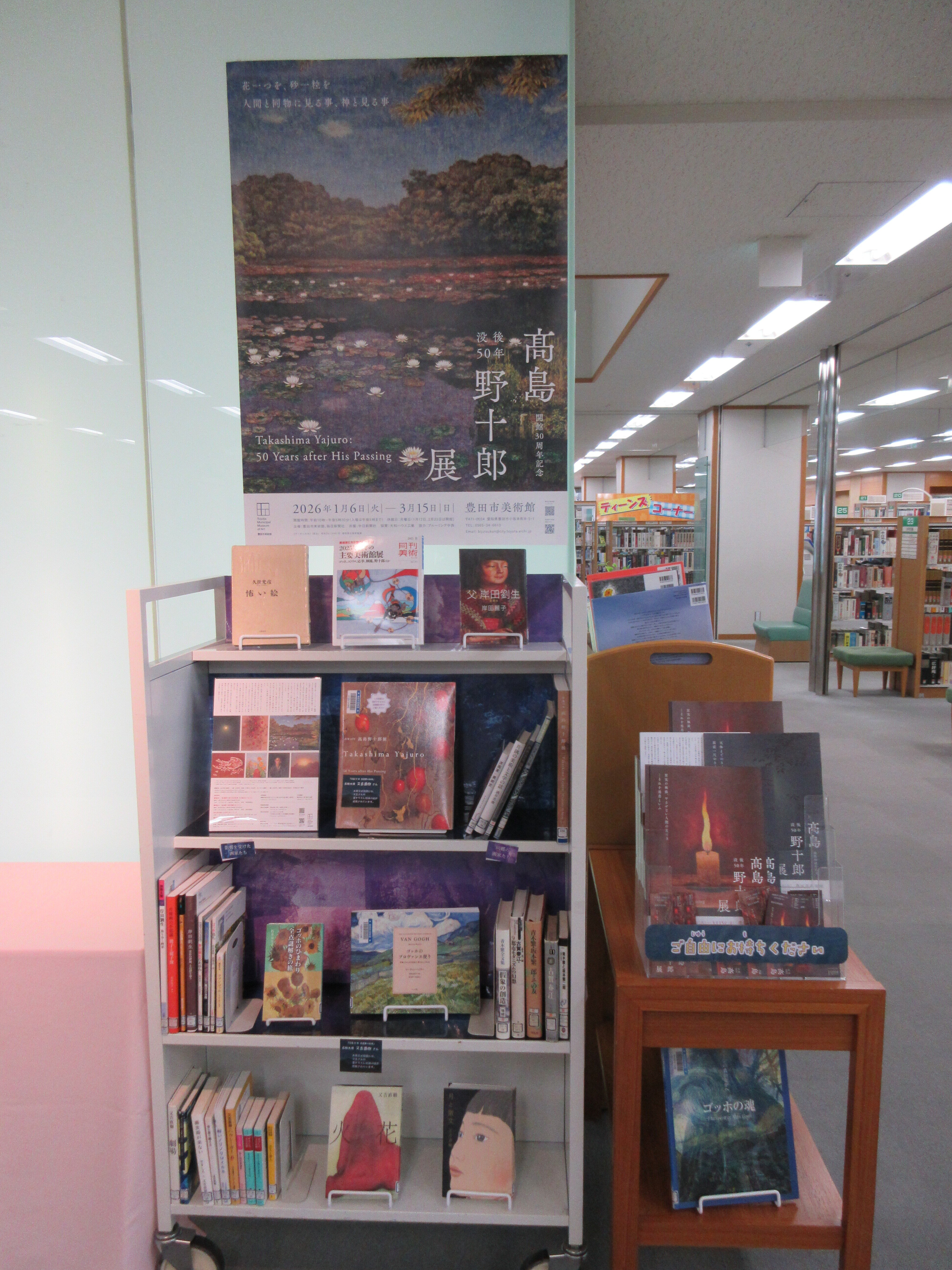 3階特集棚『「没後50年髙島野十郎展」関連資料展示』 |