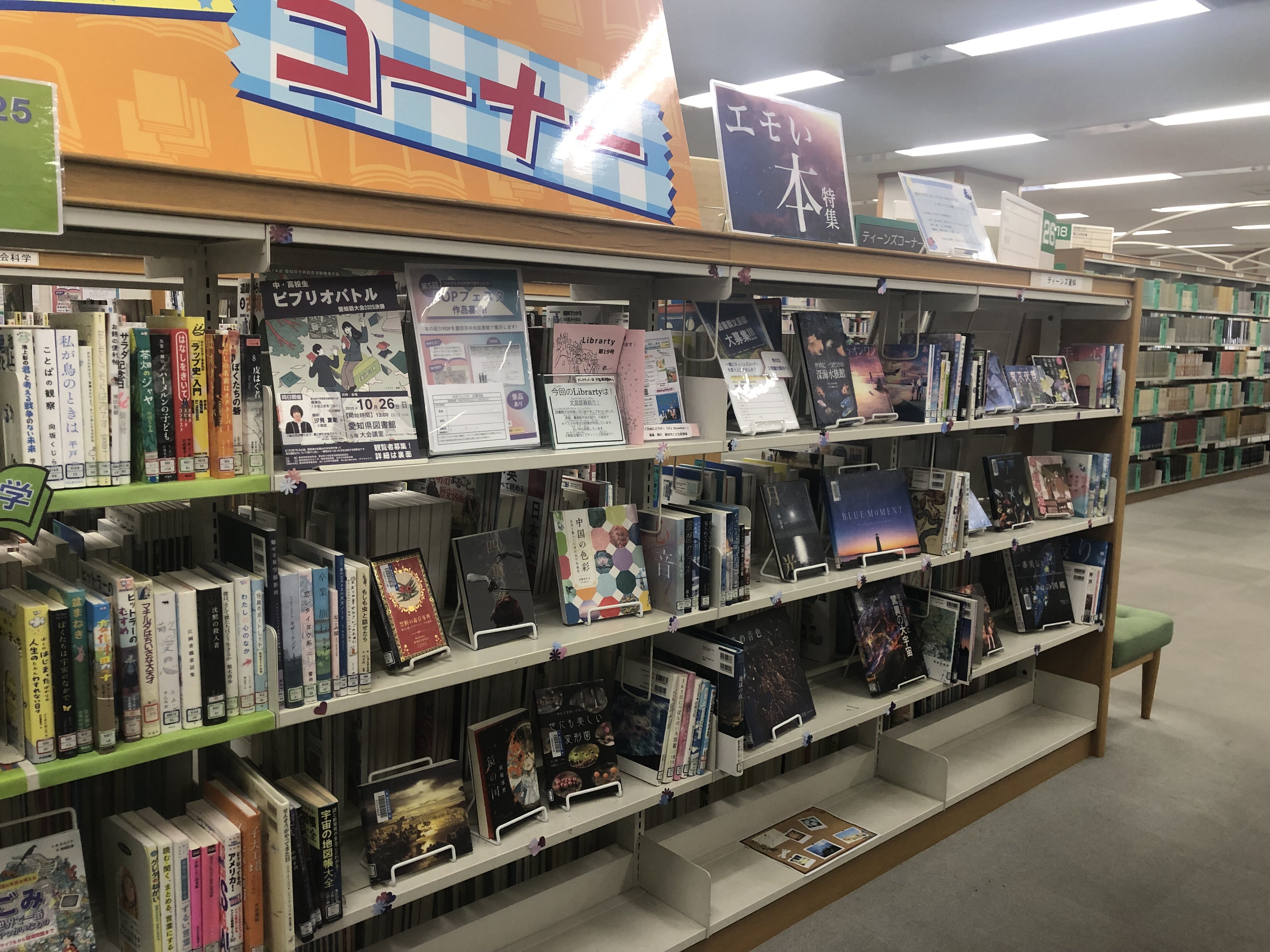 今回は高校生ボランティアスクールの学生たちが「エモい」をテーマに選書しました