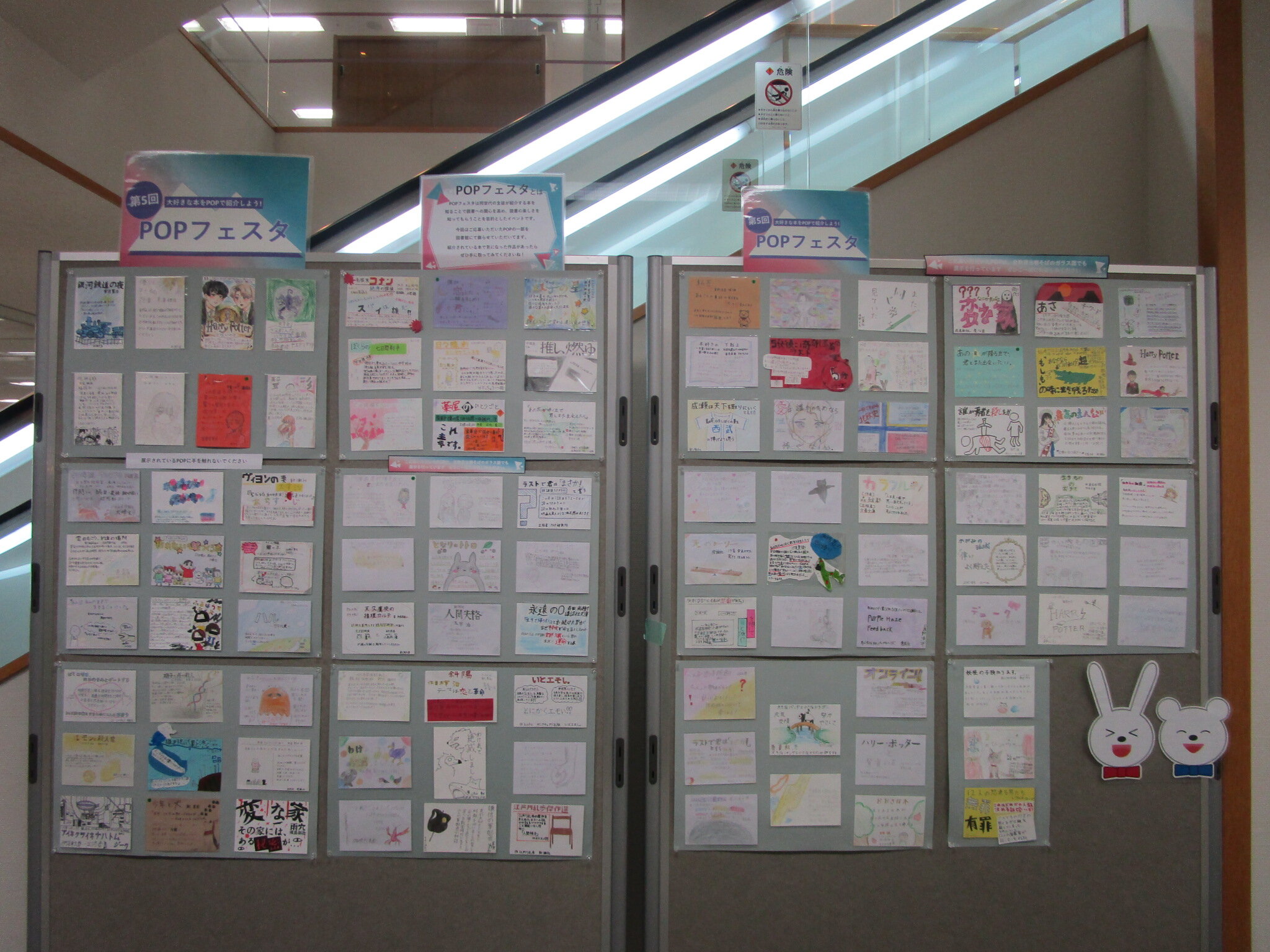 POPの展示は3階ガラス面とエスカレーター横の2か所に分かれています。ぜひどちらもご覧ください。