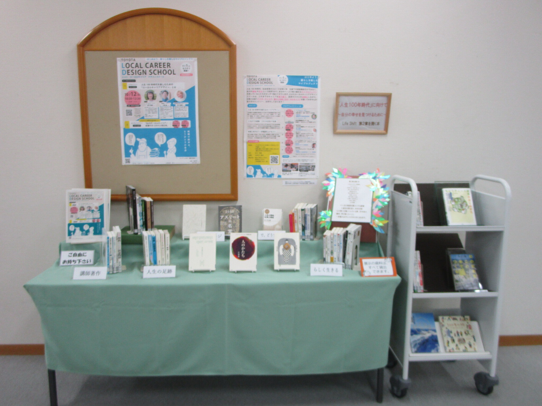 10/12(日)にキックオフイベントが開催される関内イノベーションイニシアティブ株式会社と豊田市役所 魅力創造部 学び体験推進課連携の豊田市ミドルシニア向け生涯活躍事業連携展示です ミドルシニア世代に向けて地域に必要とされるライフスタイルを形成するために役立つ本を展示しています |