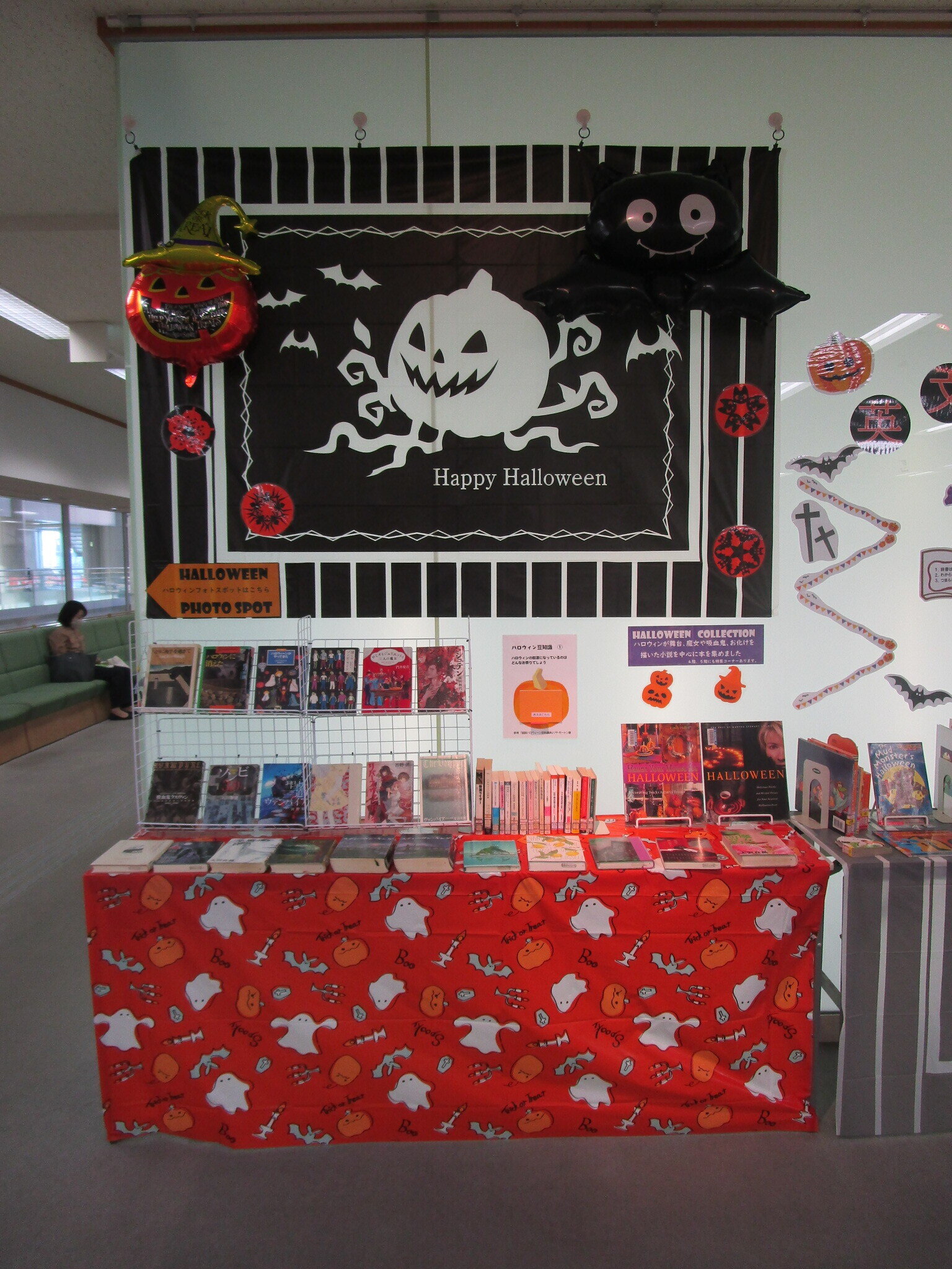 ハロウィンに関する小説などを展示しています あわせて3階エレベーター前、4階児童コーナーおはなし室、5階入り口にてフォトスポットを設置しています |
