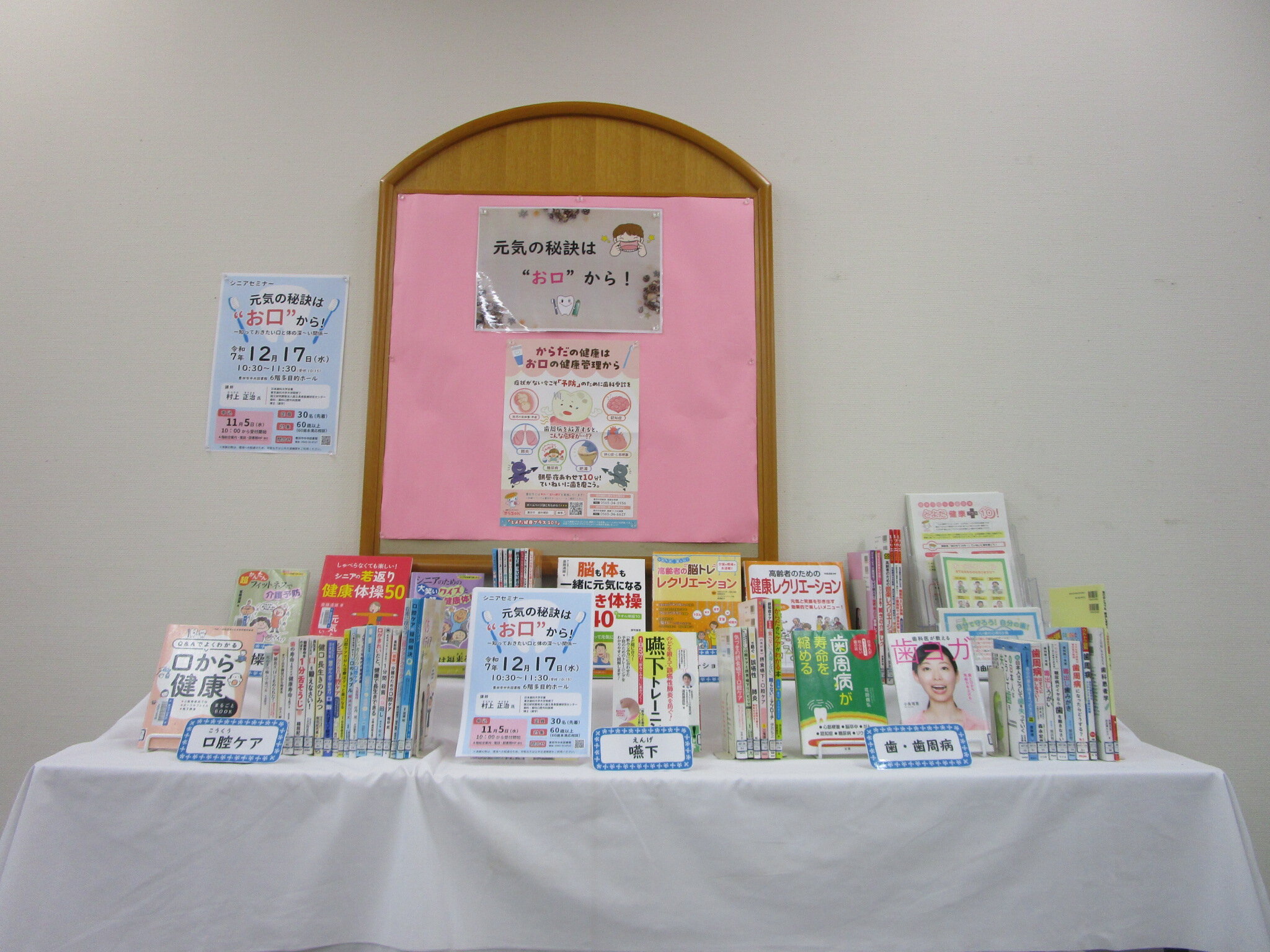 12月17日開催のシニアセミナー「元気の秘訣は"お口"から!―知っておきたい口と体の深~い関係―」関連展示です 歯科学や口腔ケアなどお口の健康に関する本を集めました |