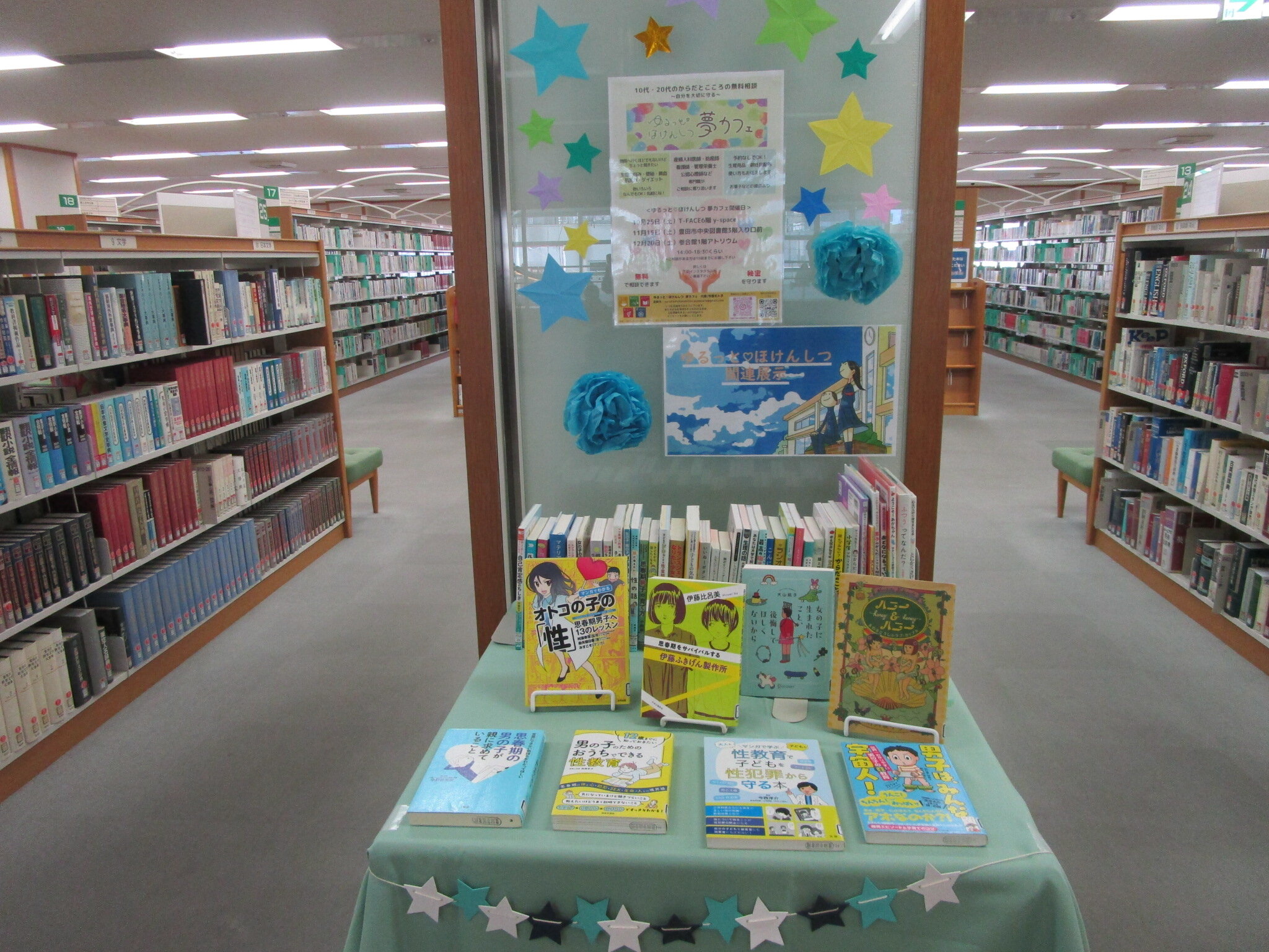 11月15日(土)に開催する「こどもとつくる 10代子ども食堂」主催の「ゆるっと♡ほけんしつ~夢カフェ~」関連展示です 青少年の健康と福祉を支援するため性教育やジェンダーに関する本を集めました 展示期間は11月15日(土)までです |